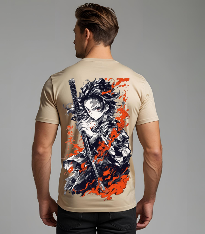Channel the spirit of the Demon Slayer Corps with this striking design of Tanjiro Kamado cloaked in deep red hues, symbolizing his unwavering determination and fiery will.