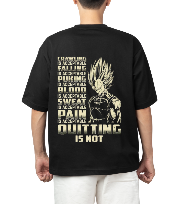 No shortcuts. No excuses. This design features Prince Vegeta in full intensity—channeling pure Saiyan pride, pushing limits, and proving strength is earned through pain and persistence.